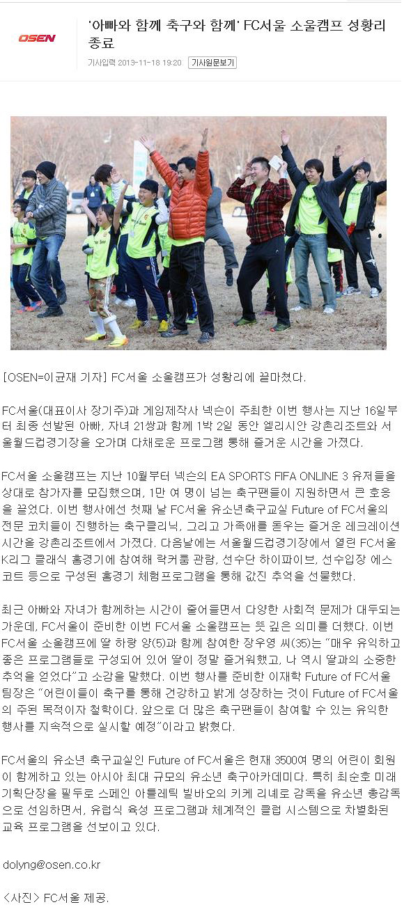 '아빠와 함께 축구와 함께' FC서울 소울캠프 성황리 종료