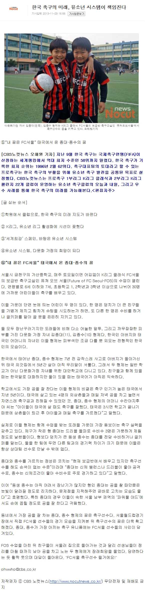 [노컷뉴스-기획연재] (5) "내꿈은 FC서울", 태국에서 온 종대-종수의 꿈