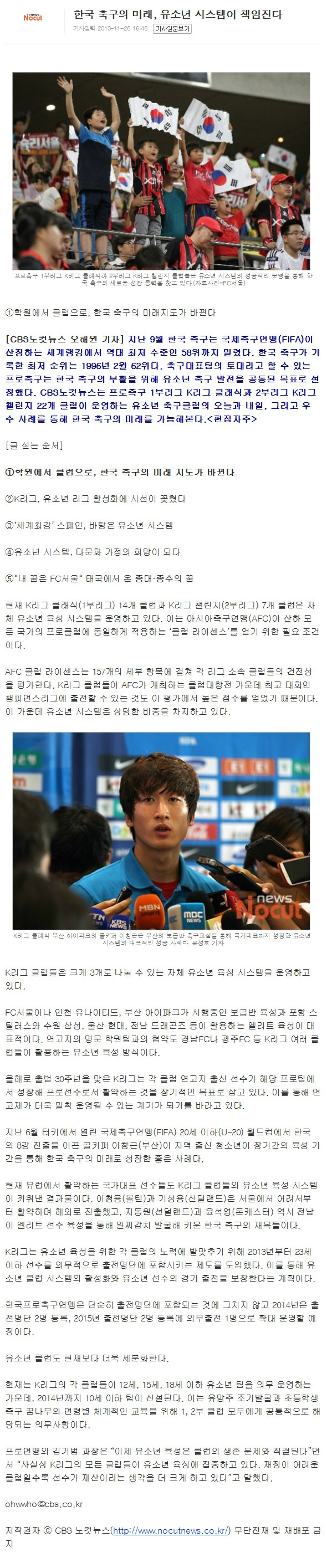 [노컷뉴스-기획연재] (1) 학원에서 클럽으로 한국축구의 미래지도가 바뀐다