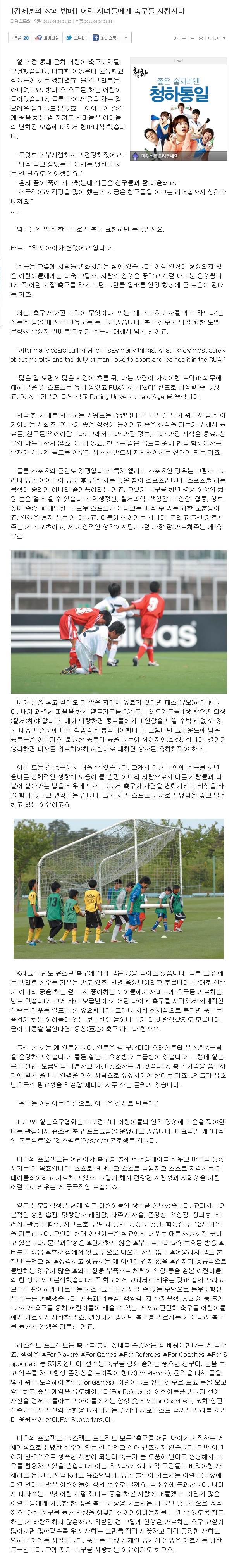 [김세훈 칼럼] 어린 자녀들에게 축구를 시킵시다!