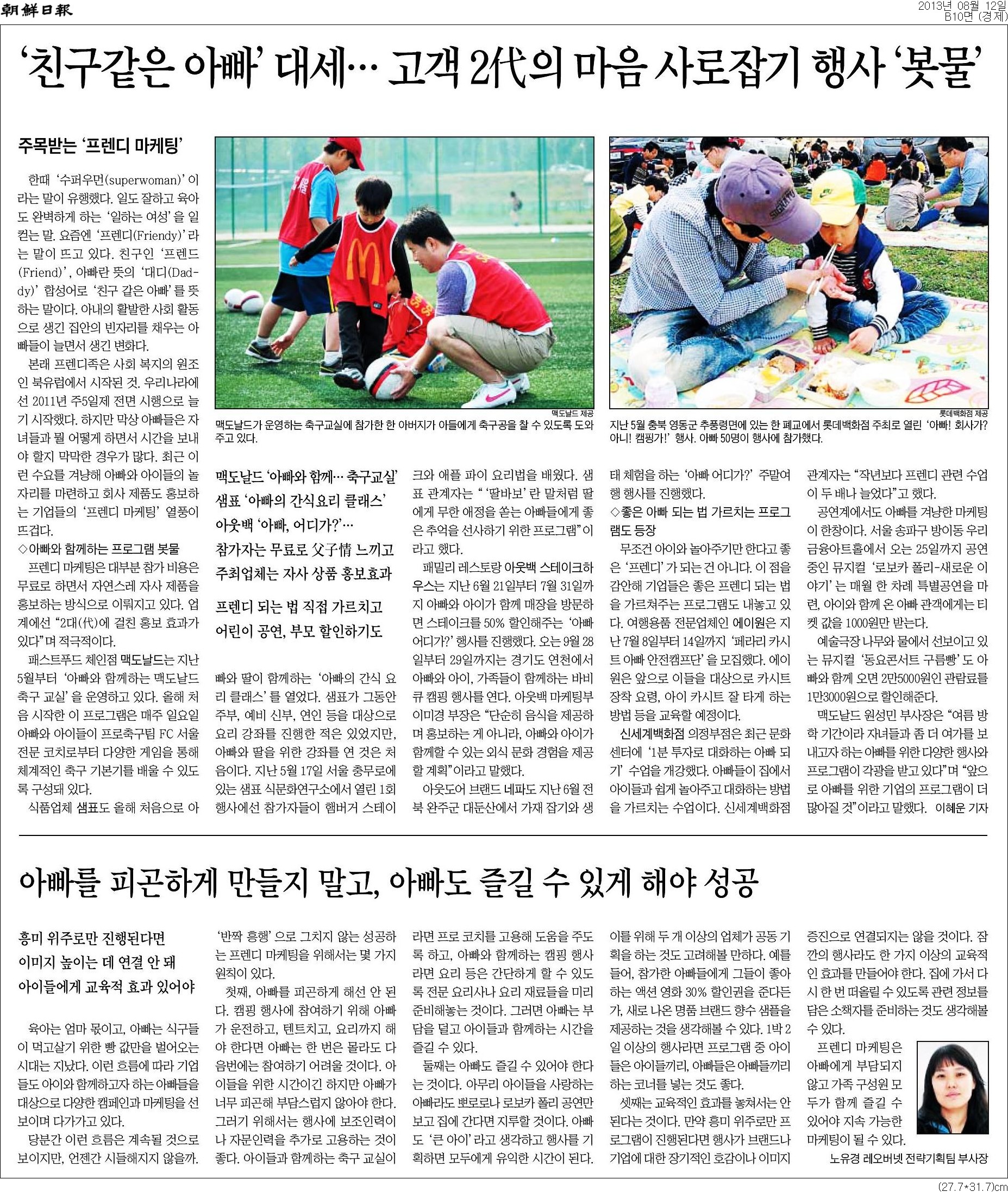 Future of FC서울과 맥도날드가 ''프렌디''를 위해 진행하고 있는 아빠와 함께하는 축구교실이 신문에 크게 나왔어요!