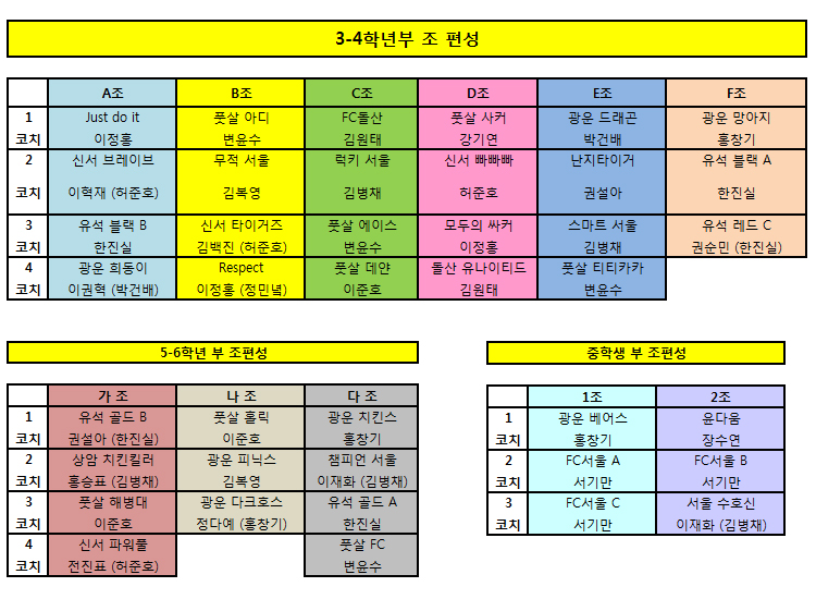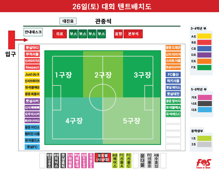 북부야드 컵대회 고학년 부 조편성과 대진표, 그리고 텐트 배치도 안내입니다. 사전에 꼭 확인하시길 부탁드립니다.