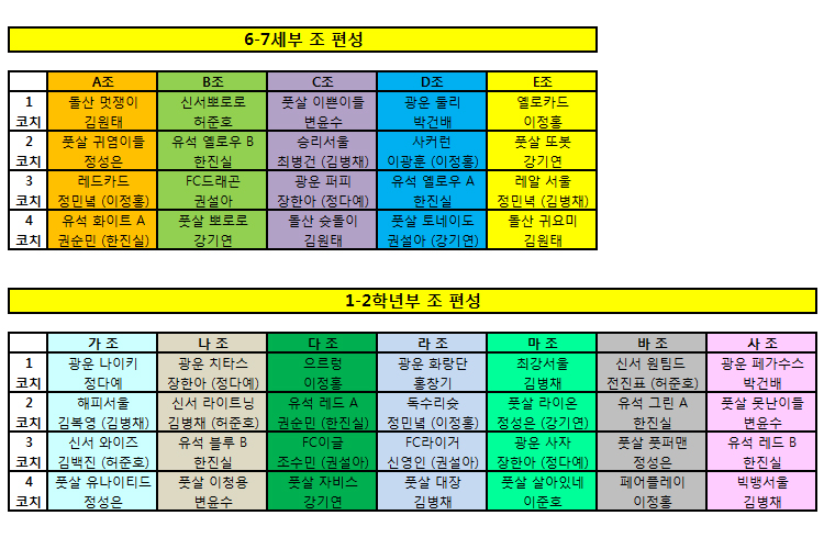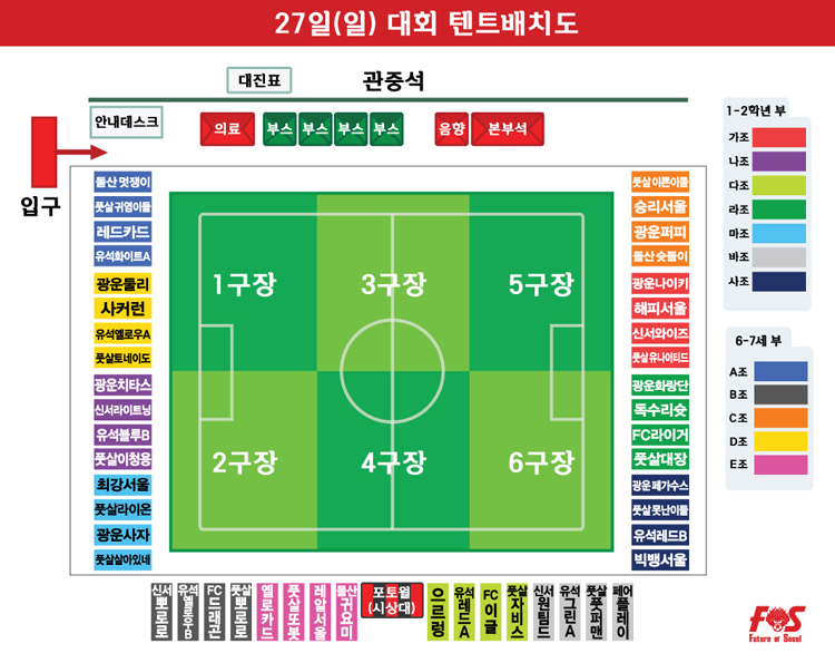 북부야드 컵대회 저학년 부 조편성과 대진표, 그리고 텐트 배치도 안내입니다. 사전에 꼭 확인하시길 부탁드립니다.