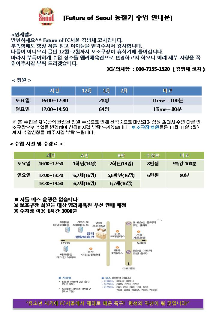[ Future of FC 서울 ] 보조구장 동절기 수업 안내문