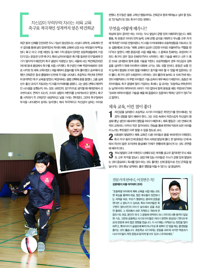 축구를 통해 적극적인 성격을 얻어 학교 생활까지 잘해내고 있는 박건희 어린이..