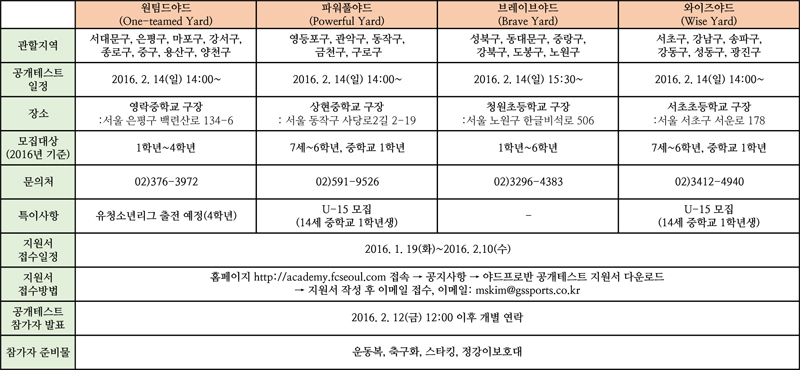 ▣ 2016 Future of FC서울 야드프로반 공개테스트 안내 ▣