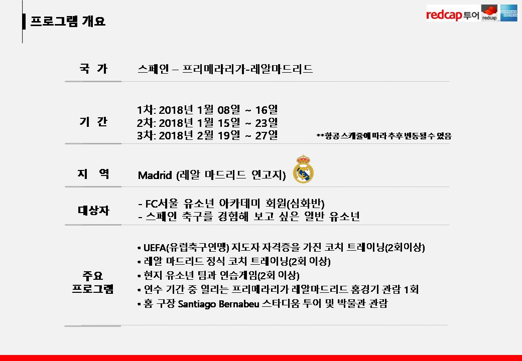 FC서울 코치 및 여행사 관계자가 함께 인솔 및 프로그램 운영하여 안전하고 알차게 진행됩니다.