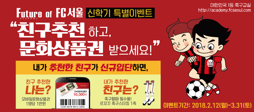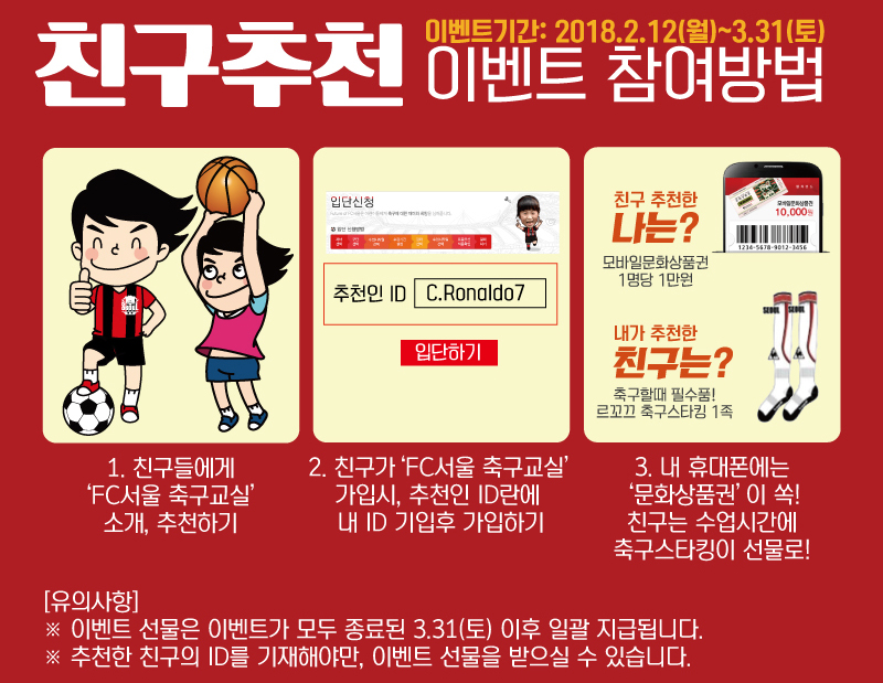 내가 추천한 친구가 FC서울 축구교실의 새로운 회원으로 입단하면,