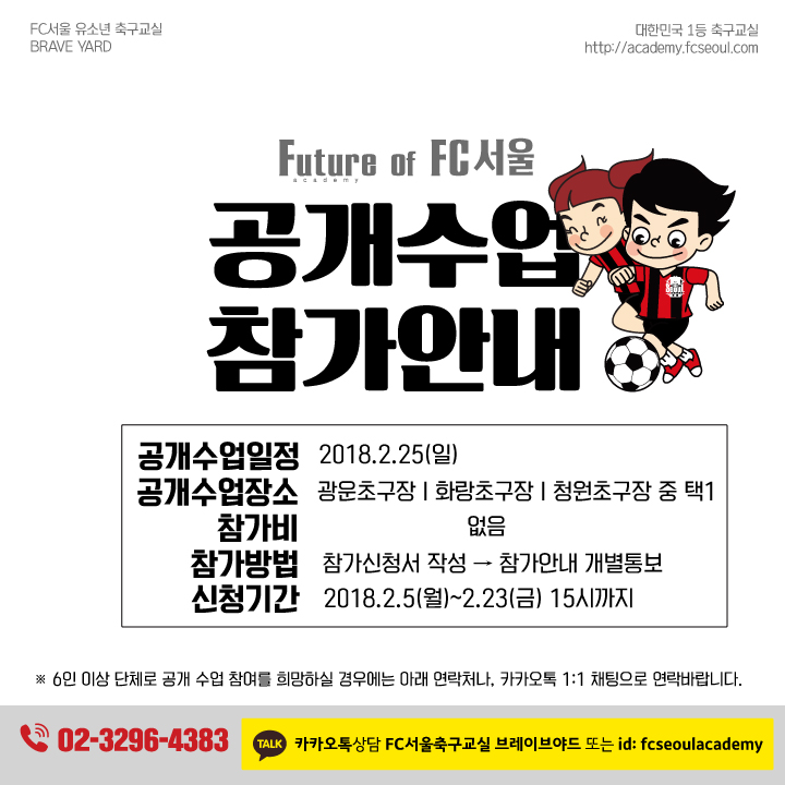 이용에 착오 없으시기 바라며, 기타 궁금하신 사항은 카카오톡 1:1 채팅(ID: fcseoulacademy)이나, 전화 02-3296-4383으로 연락부탁드립니다.