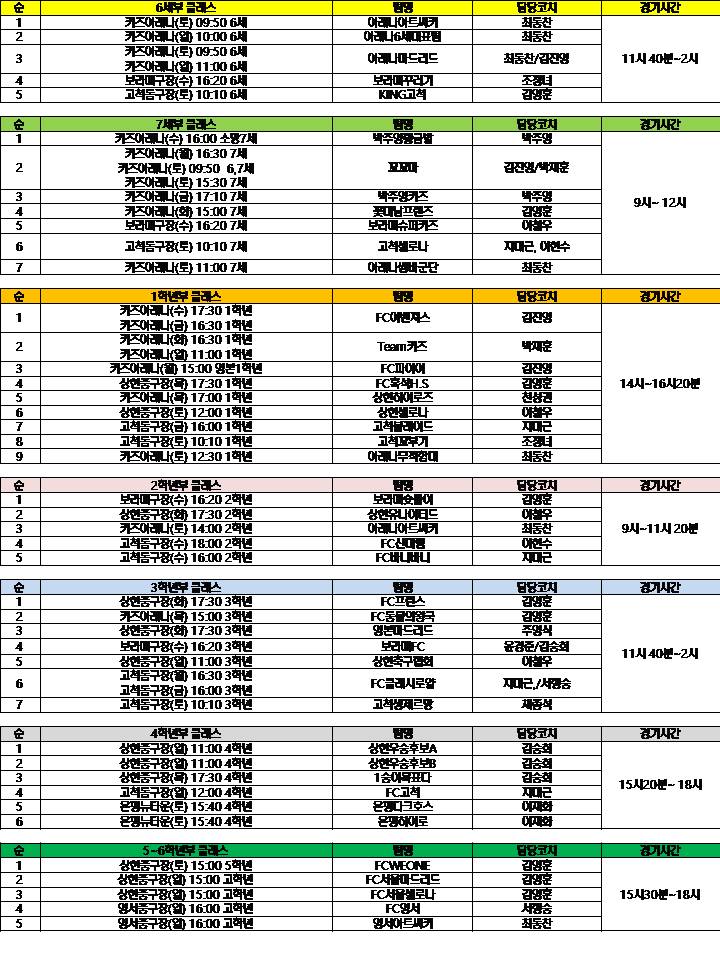 ★★★★★ 클래스별 팀명 및 경기시간 안내 ★★★★★
