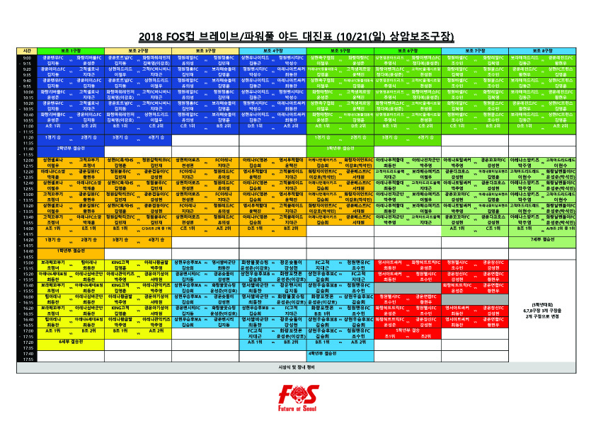 2018 FOS컵 10/21(일) 브레이브/파워풀야드 대진표