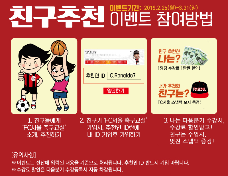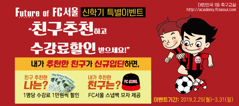 내가 추천한 친구가 FC서울 축구교실의 새로운 회원으로 입단하면,