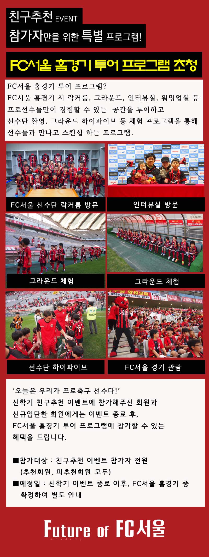 특별한 추억을 만들 수 있는 FC서울 홈경기 투어 프로그램 참가 기회를 제공합니다.(아래 내용 참고)