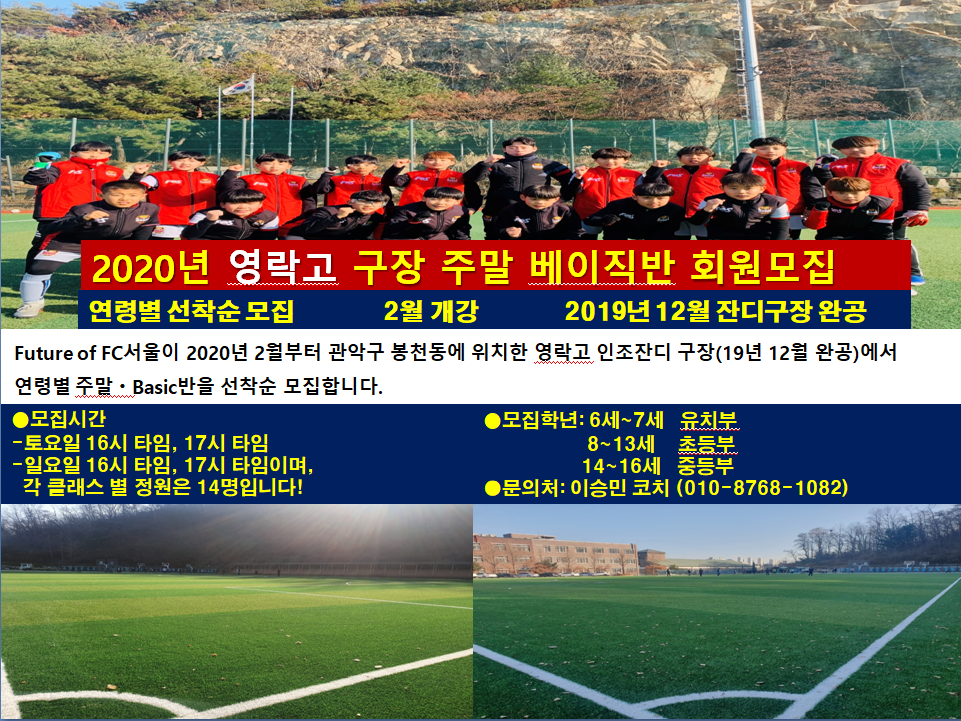Future of FC서울이 2020년 2월부터 관악구 봉천동에 위치한 영락고등학교 잔디구장에서 연령별 주말·Basic반을