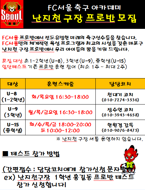 2021년 FC서울 난지천구장 프로반 모집 안내