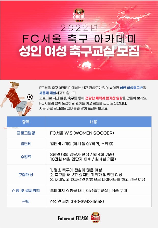 FC서울과 함께 그녀들처럼 도전하길 원하는 여성 회원을 긴급 모집합니다.