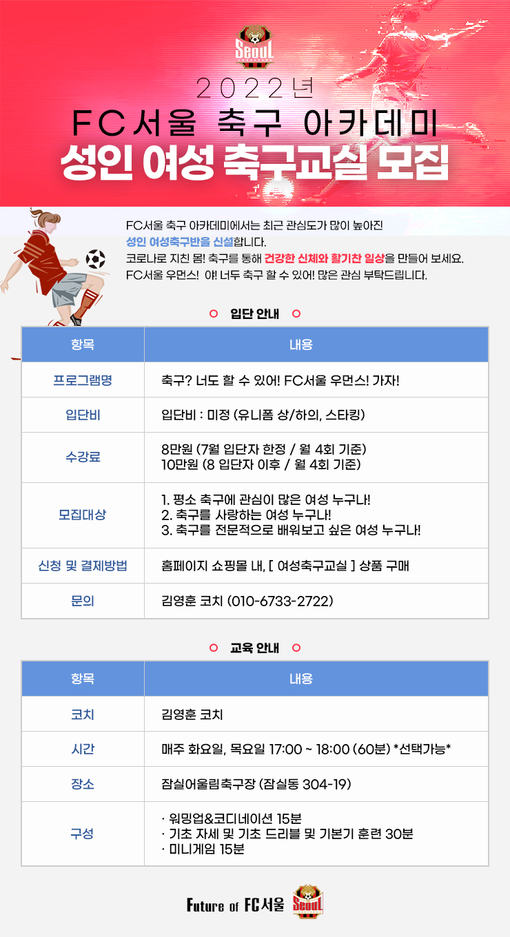 FC서울과 함께 그녀들처럼 도전하길 원하는 여성 회원을 긴급 모집합니다.