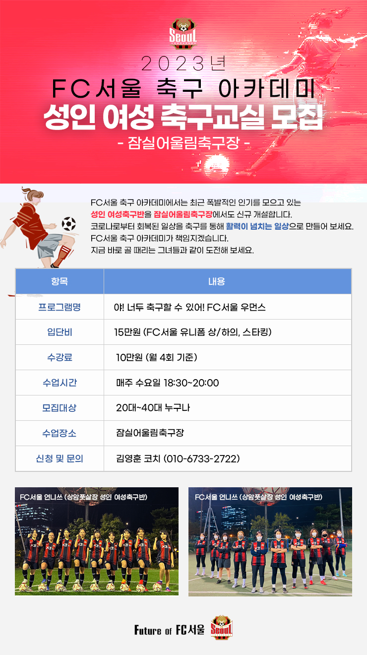 (모집) 2023 잠실어울림축구장 성인 여성반 안내