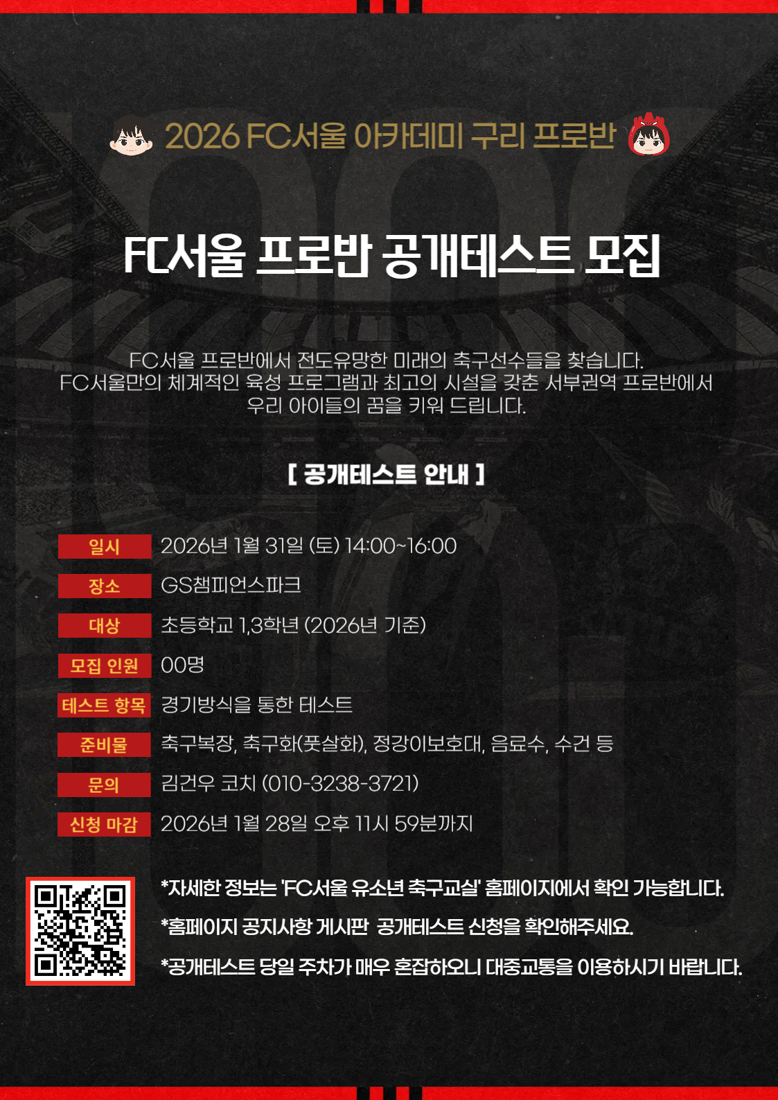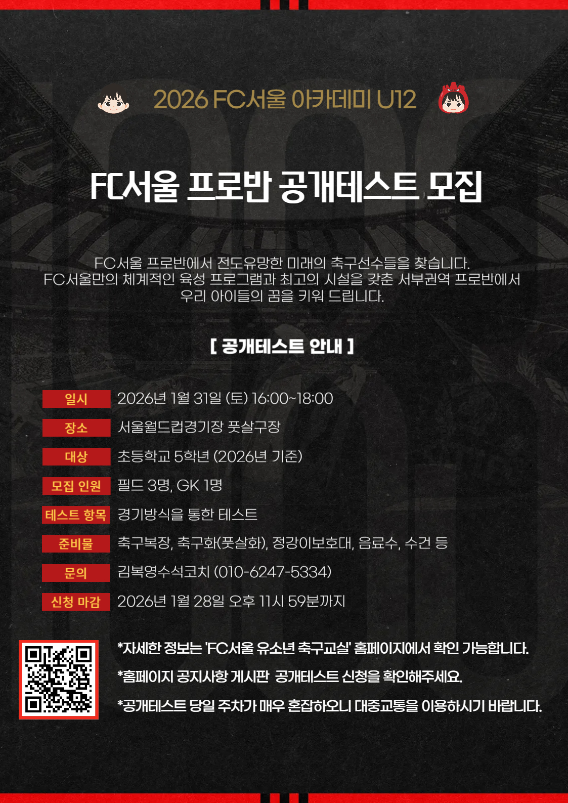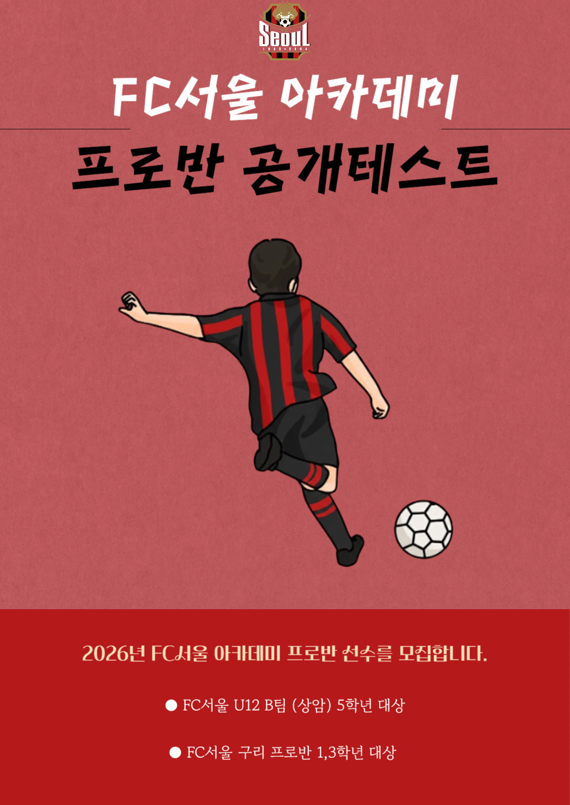 [공개테스트] 2026 FC서울 아카데미 프로반 공개테스트 안내