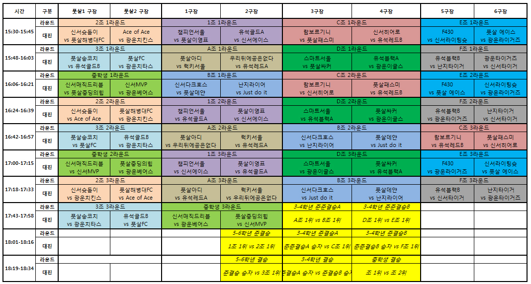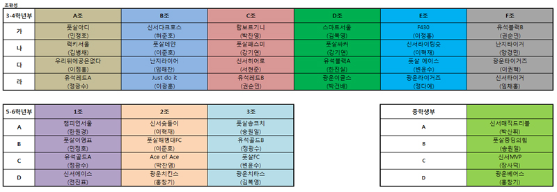 6/2 오후 컵대회 조편성 및 대진표