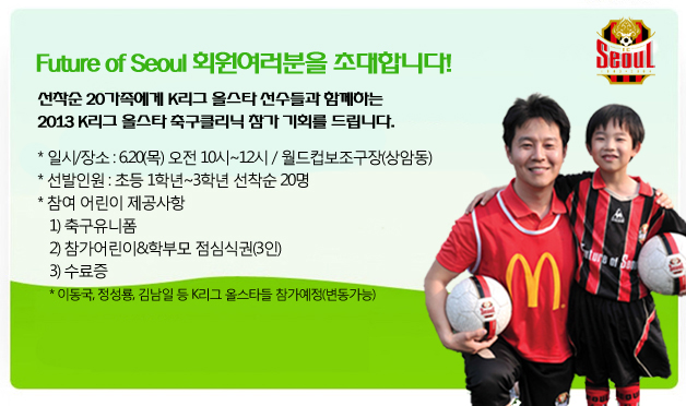 FC서울 올스타 선수는 물론 이동국, 정성룡, 김남일까지 만날 수 있는 특별한 기회!
