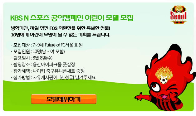 - 제목 : [어린이 모델 신청] 00구장 00세 000 어린이 모델 신청합니다!