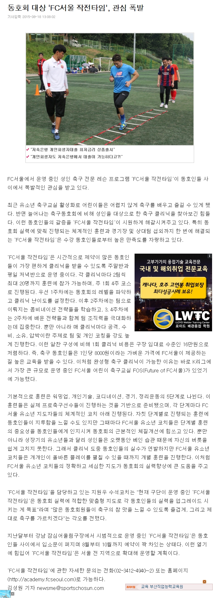 [스포츠조선] FC서울, 성인동호회팀 레슨수업 인기 폭발!