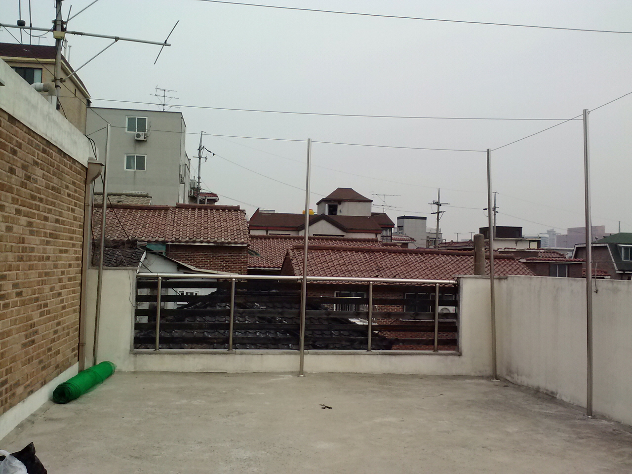 테두리 돌아가며 매쉬망 설치중 울 큰딸 포즈잡고 사진 한컷