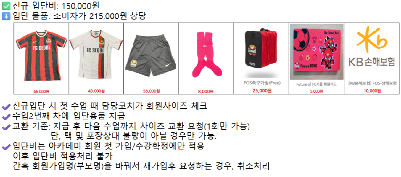※지급 용품들은 FC서울 축구교실 쇼핑몰에서 확인 가능하십니다.